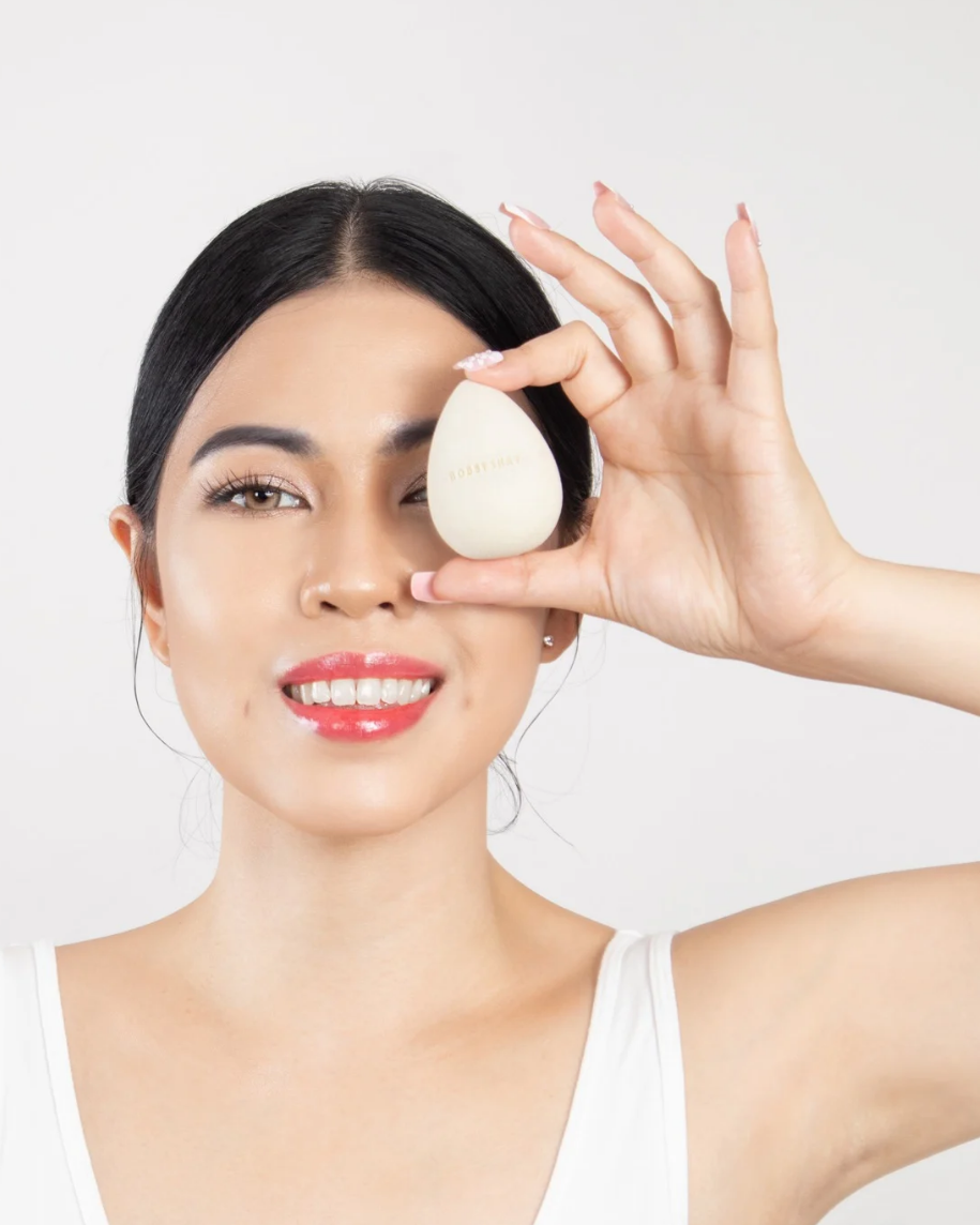 - Foundation: Dampen the sponge and bounce it along your skin for an even, airbrushed effect.